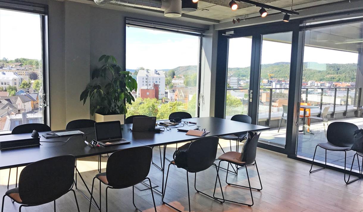 What an experience to train here! At the top of the hotel is the fitness room and here you can run on the mill and have a view all the way to the neighboring town of Skien in the north!