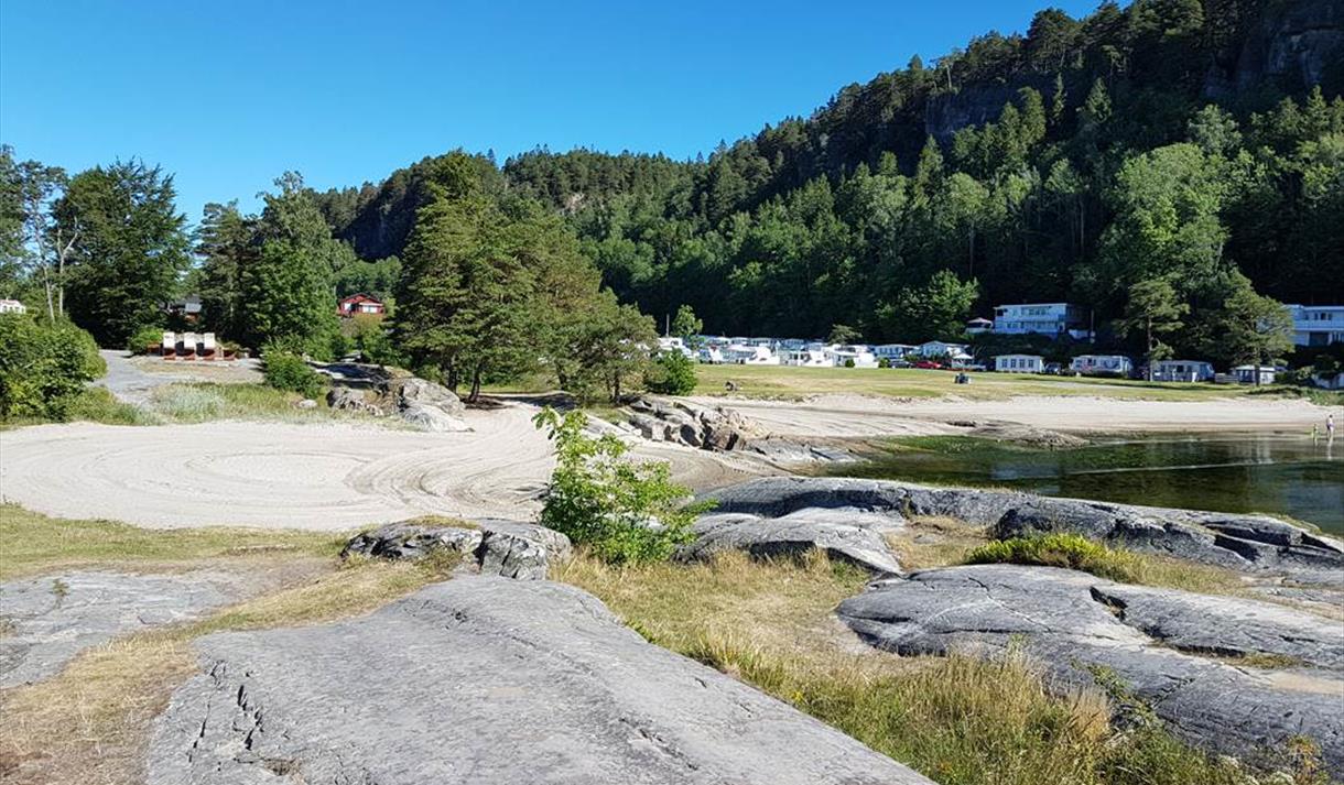Rognstranda is located in southern Norway, in Bamble municipality, 2 km from the E-18 between Oslo and Kristiansand. The campsite is idyllically located by the sea in the innermost part of Rognsfjorden on the Telemark coast. The area has one of Norway's finest beaches and boulders.