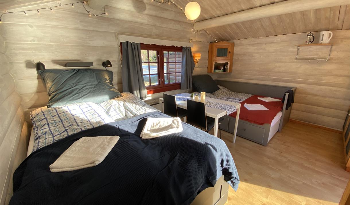 Along the shore of the lake there is a sauna which can be used all year round. Close to the water you can easily go for a swim if you like. Enjoy the beautiful view through the big window after a hike in the mountains or if you just need some time to relax and take deep breaths. Space for up to 8-10 persons.