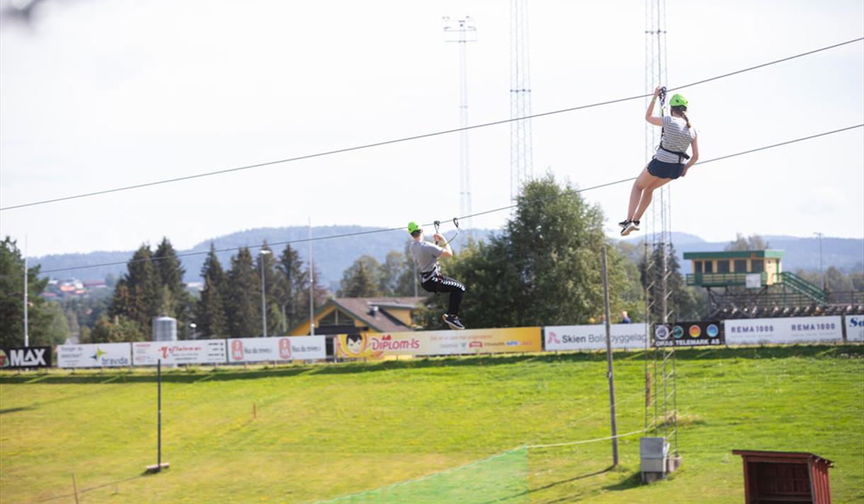 In the summer of 2021, the park got a new attraction, with an handicap zipline of a full 220 meters and approx. 10 meters above the ground! This is an experience you won't forget and can share with someone in your family, because it is designed for tandem driving. In addition, a third person can run in parallel on the other cable. A rope brake and a lift on arrival ensure that you don't slip into the carpet on arrival.