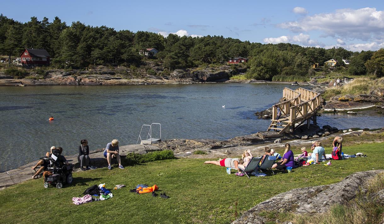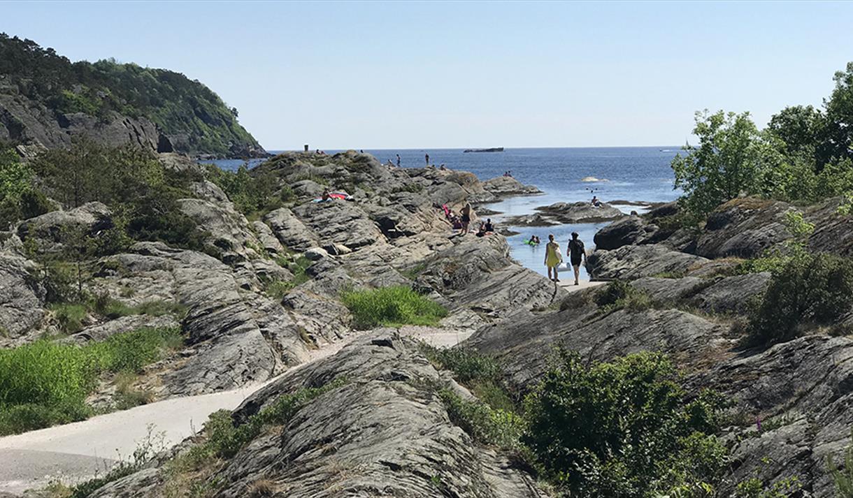Krogshavn recreation area boasts large grassed areas with bathing beaches, football pitches, beach volleyball courts, Bamble municipality’s Millennium Site and the old playground. Playground equipment and barbecue.
