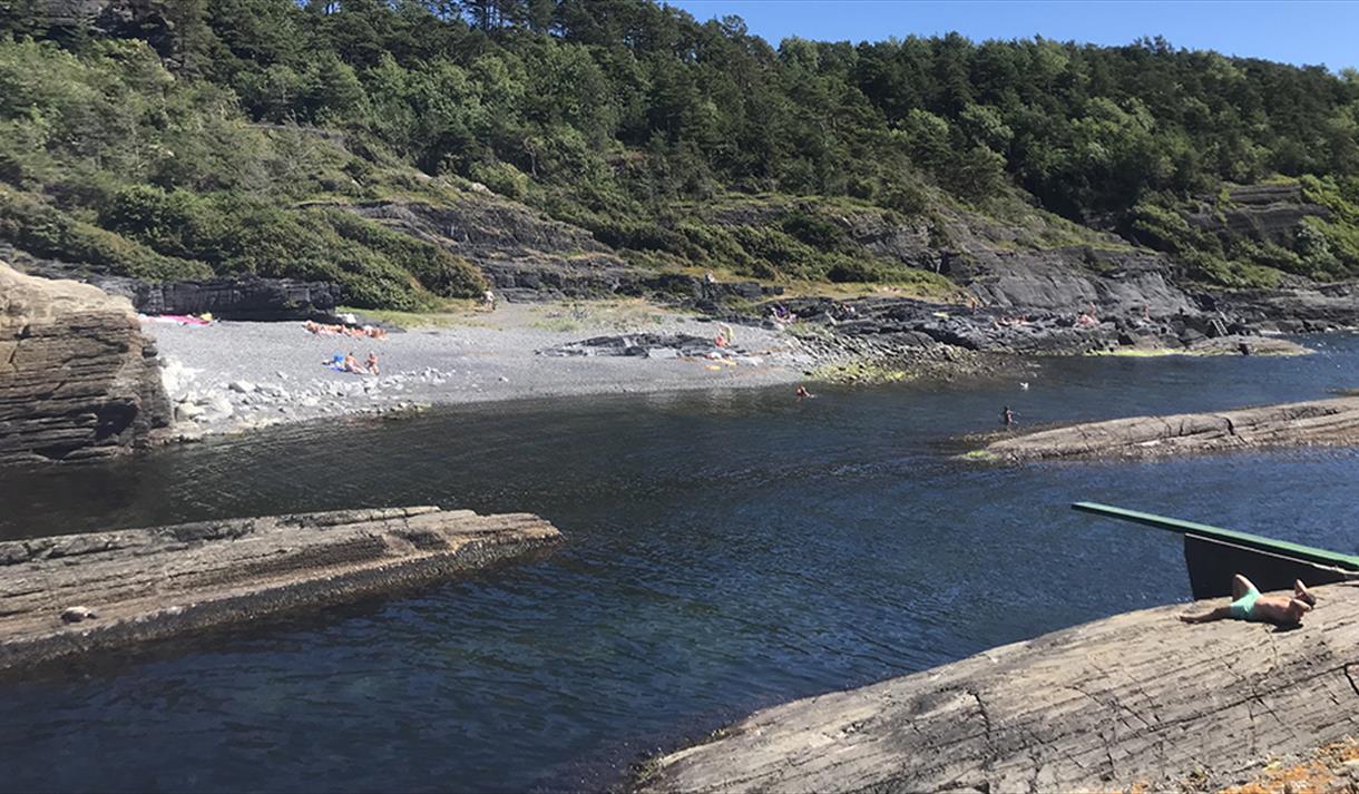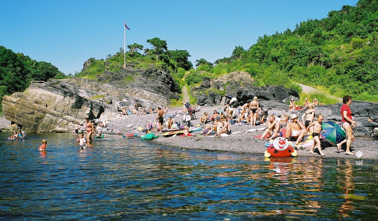 Popular bathing place near Langesund with attractive smooth sloping rocks. Signposted path from Langesund.