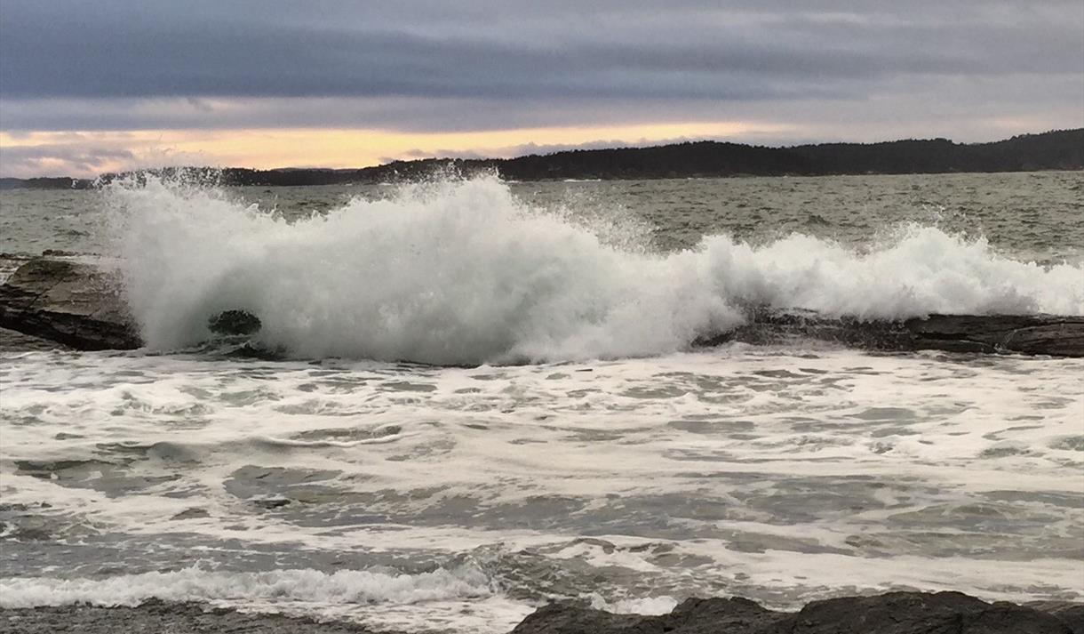 You can also experience Steinvika in absolutely foul weather! When there is a southwester sweeping up the Rognsfjord with waves crashing against the cliffs and spray shooting high into the air, many people come here to watch this stormy natural drama play out.