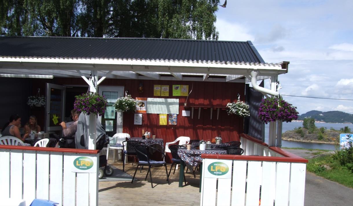Option 2: Go straight from Løvøysundet on the path and gravel road to Sandøya center at Kommunebrygga and use the cozy surroundings and facilities you will find there before returning to Brevik.