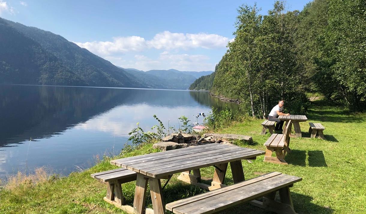 Lindeviki is the only place to camp on the north side of Bandak between Lårdal and Straumane in Kviteseid. You should paddle on the north side of the lake to see the camp site.