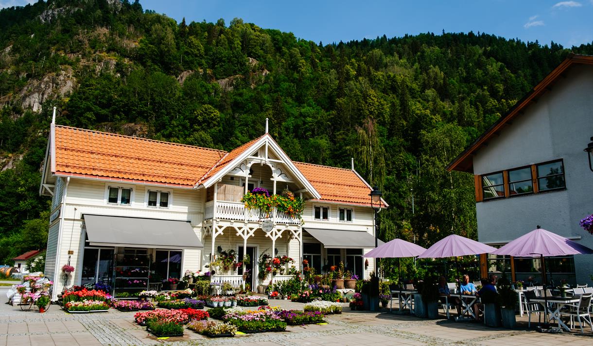 Blomsterbua offers a varied selection of flowers, plants, interiors and more. Selections and colors vary with the season. Large outdoor pots and shrubs, perennials, roses, clematis, herbs and fruit trees.
