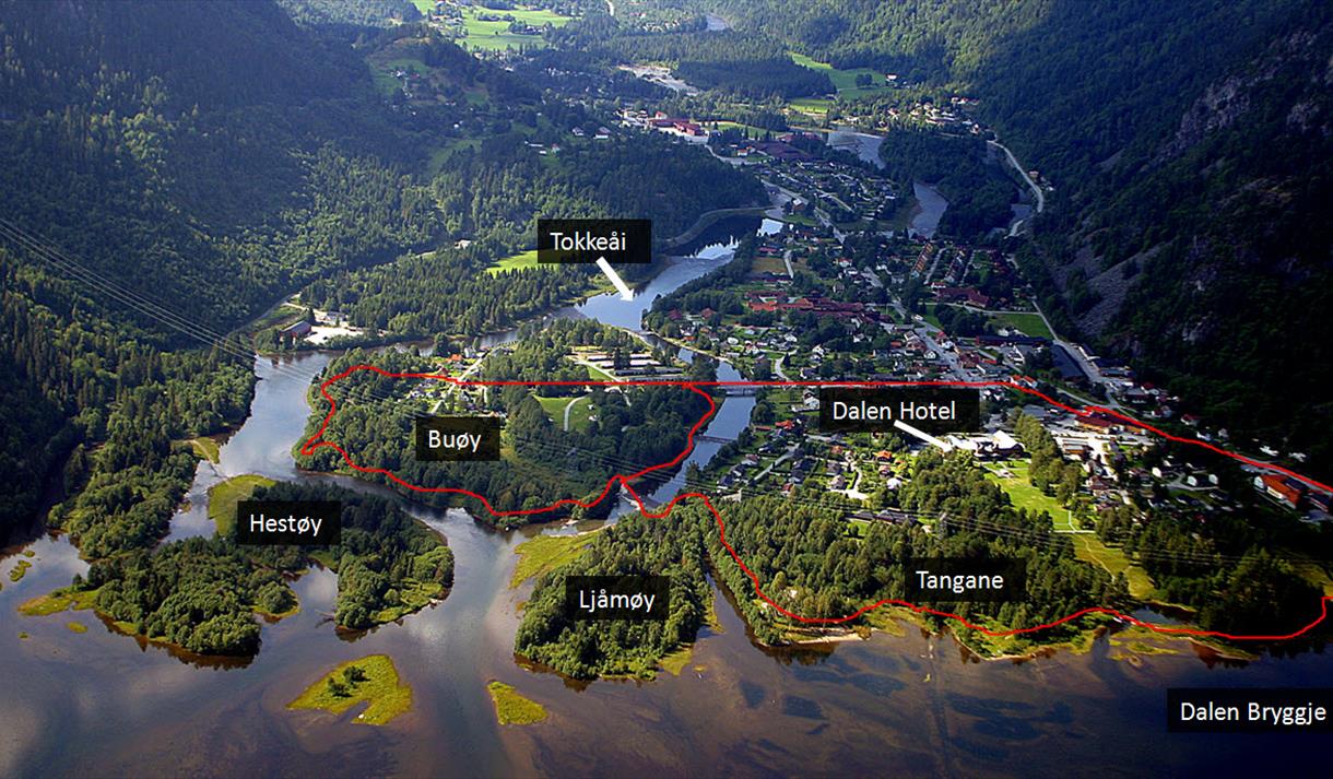 At Buøy island, follow the nature trail through the fascinating “jungle”, along the river with its great fishing spots and extensive beaver population. You can buy a fishing license for the Tokkeåi river and Lake Bandak at fishspot.no