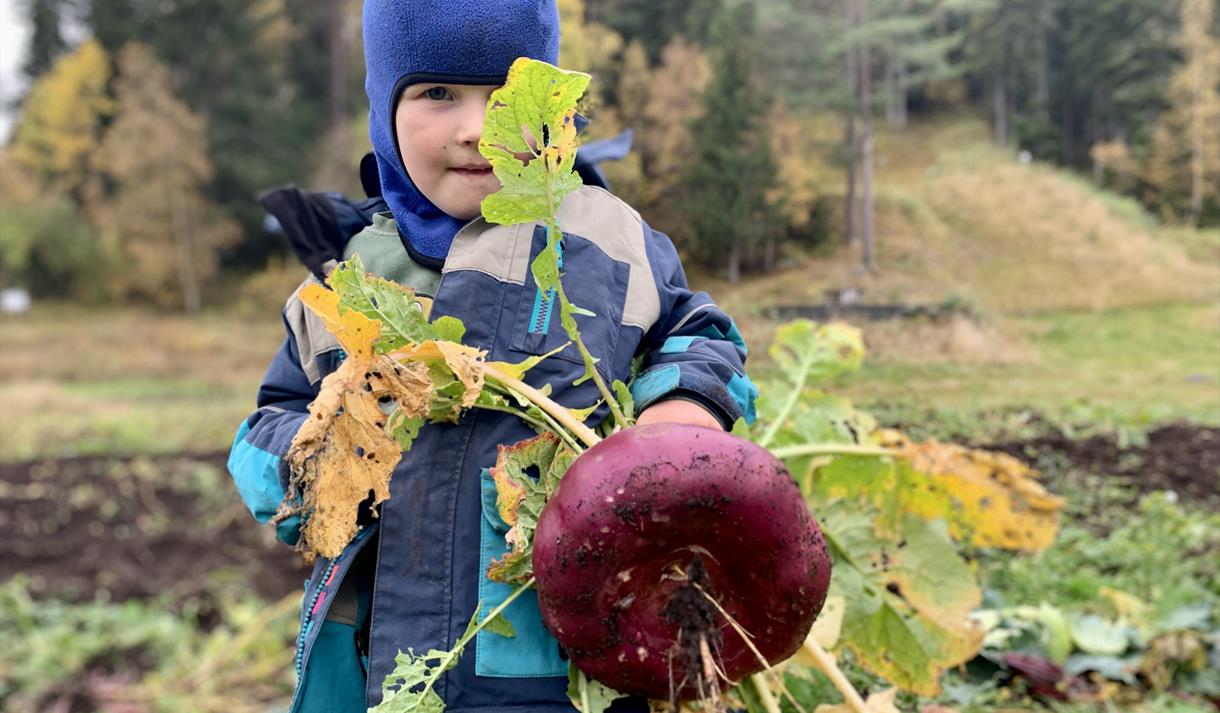 In the field you will find potatos, carrots, onions and turnips, beans and cabbage. Also a field of