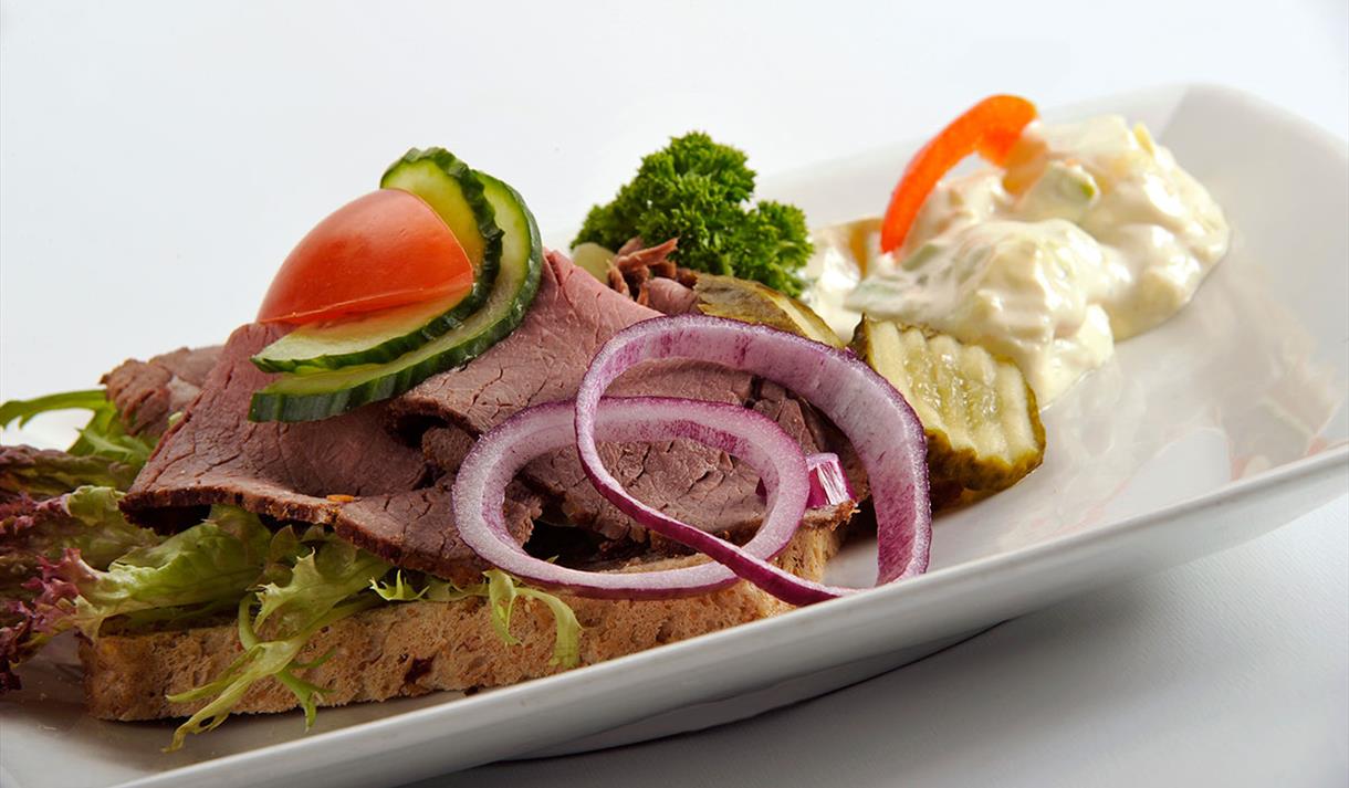 At Aarnes Cafeteria, it is arranged for wheelchair access at street level and the opportunity to drop off right outside the front door. There is an electric door opener on the front door and a HC toilet in the restaurant. The function room in the basement has a separate entrance which is also suitable for wheelchairs in addition to separate HC toilets.