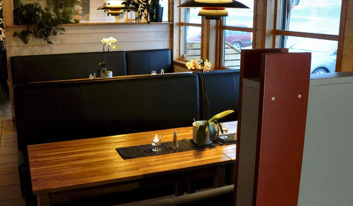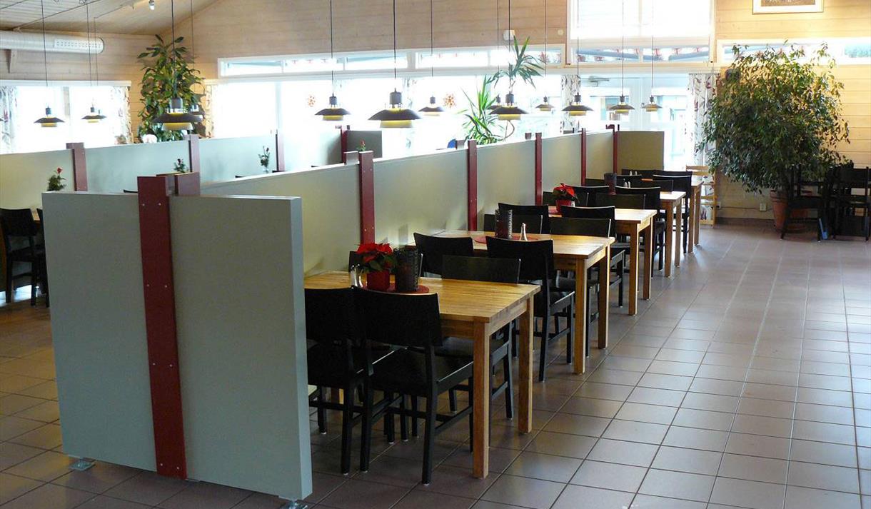 The kafeteria is airy with high ceiling, and full of natural light. It has room for up to 180 people, and has a friendly atmosphere with tables in different sizes for small and bigger groups of people.