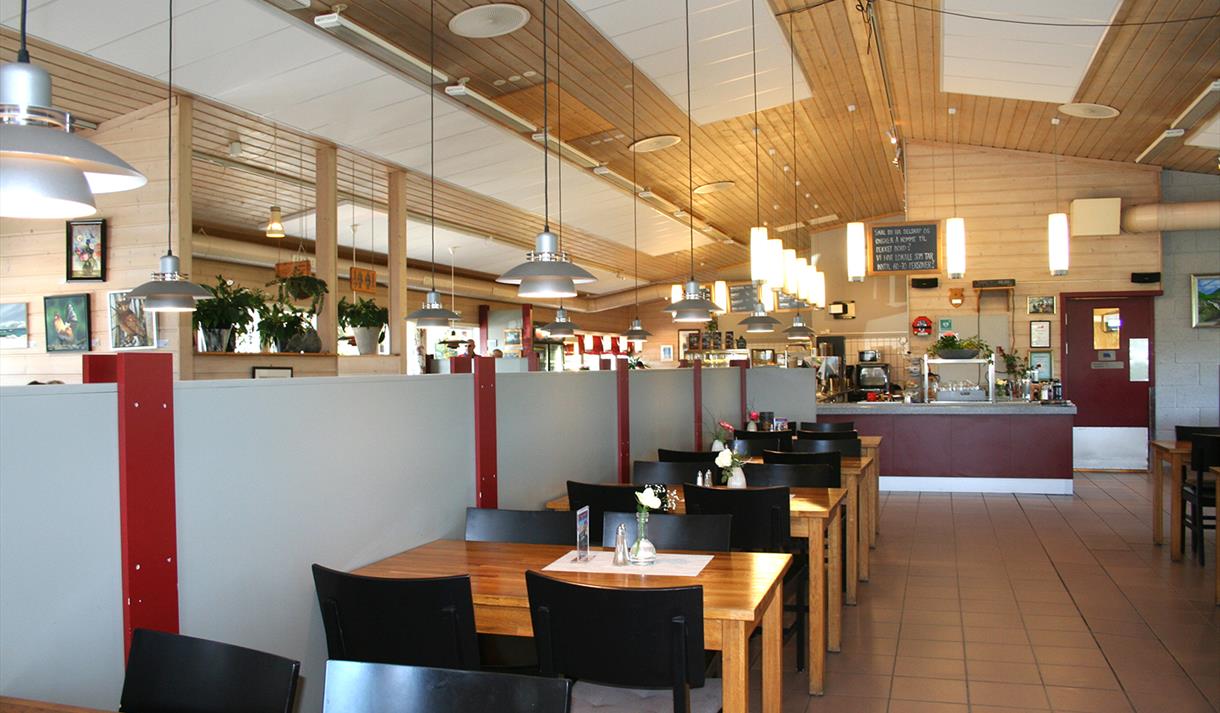 Aarnes Kafeteria is situated along RV 36 between Ulefoss and Gvarv, and has a well sheltered patio, and beautiful views over Norsjø and Sauherads fruit orchids. It’s easy to find Aarnes Kafeteria, and it’s plenty of parking space for cars and bigger vehicles.