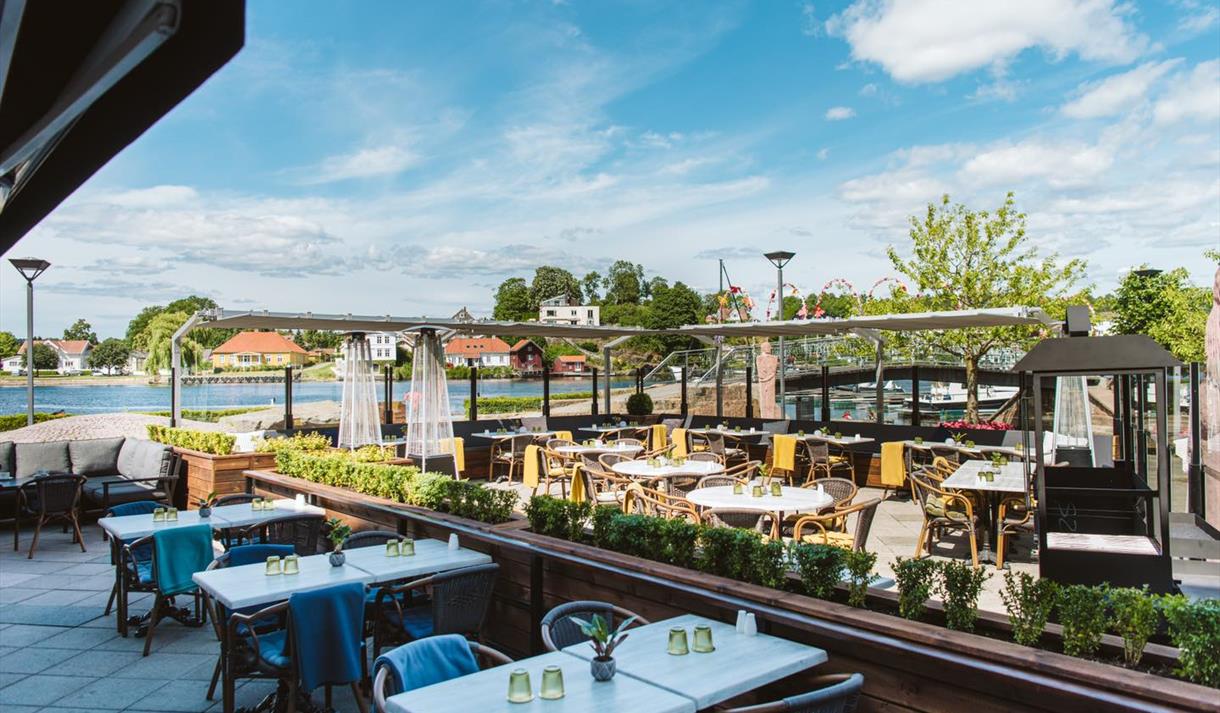 The restaurant is located in modern, delicate premises on Bratsberg brygge in Porsgrunn and also has great outdoor seating when the weather permits.