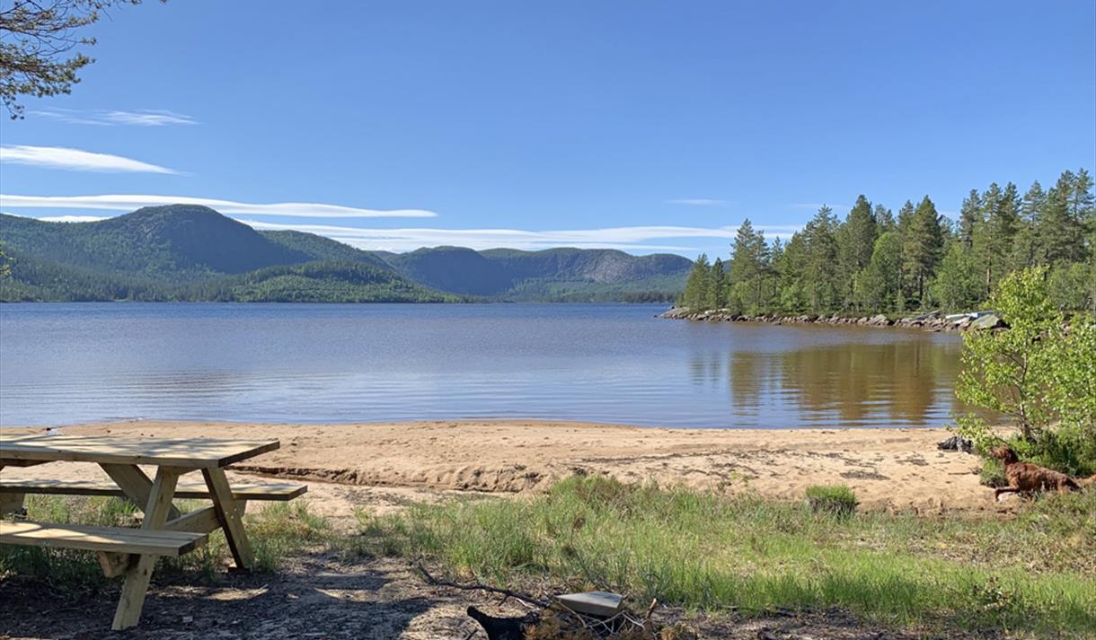 Birtehytta is located at the southern end of Birtevatn and features a beautiful sandy beach, late evening sun, and views of Rjupetoheia. The cabin has a kitchen, a living room, and four single beds distributed in two sleeping alcoves. It is of basic standard, with an outhouse in the vestibule and no running water or electricity. Water can be fetched from the creek or the well house, and food is prepared using propane and a hotplate. There is a road all the way to the cabin, making access easy.