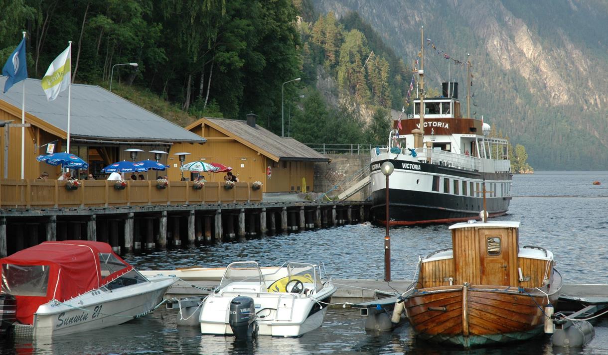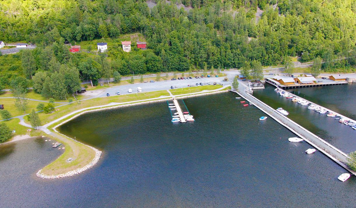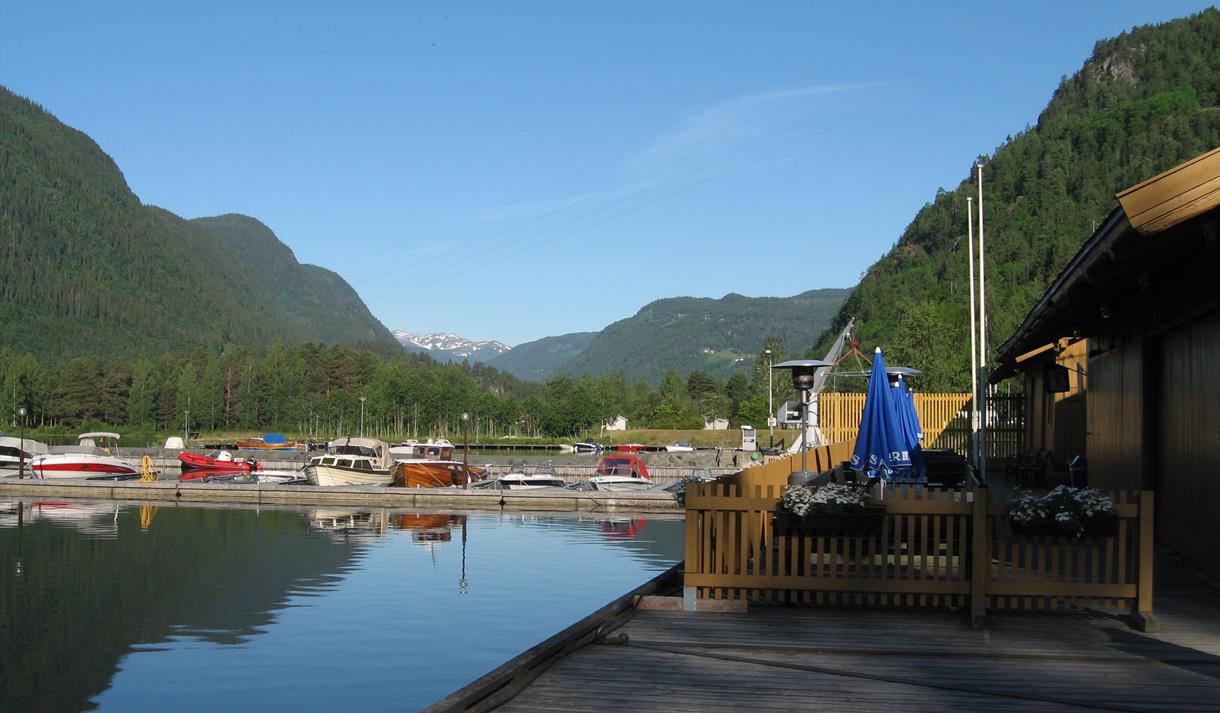 Approx. 20 berths. NOK 100 per day with electricity, NOK 70 without electricity. WC, drinking water, boat toilet emptying, kiosk, tourist information, meals and fuel. Art exhibition by the pier.