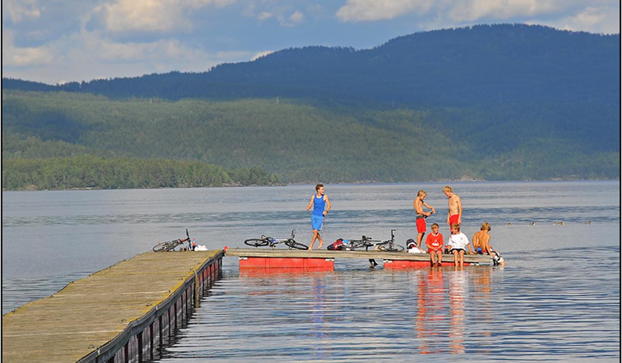 On the floating dock there is a sauna, where you can jump right into lake Norsjø.