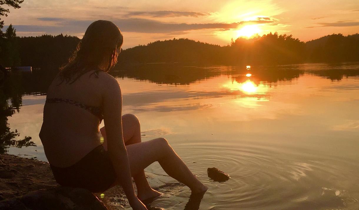 Pack with you what ever you need to enjoy a delicious summer day and set the course here, either on foot or by boat and dock at the quay area. Sit down on one of the picnic benches or take advantage of the big, beautiful lawn and enjoy yourself in the sun. When the sun is at its highest, you can cool off from the quay area with a bathing staircase and diving board, or stroll into the delicious waters from the beautiful sandy beach. If you bring your fishing rod, the area also offers good fishing possibilities, and if you are lucky you may have dinner ready before leaving. Here you will also find basic facilities such as a toilet.