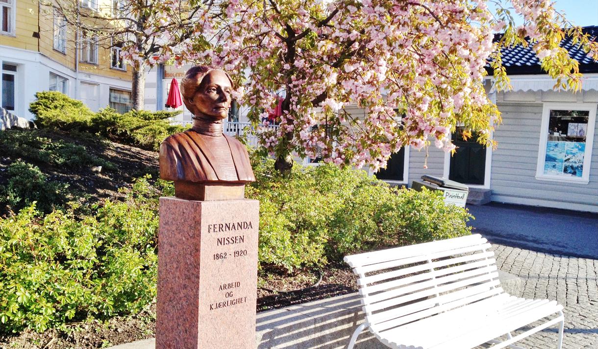 The local artist Tone Ørvik who teaches at the Art School in Kragerø made this bronze bust of Fernanda Nissen. The bust can be admired at the Jens Lauersøns place. You´ll find the atelier of Tone Ørvik at the Artist Quarter near by the church.