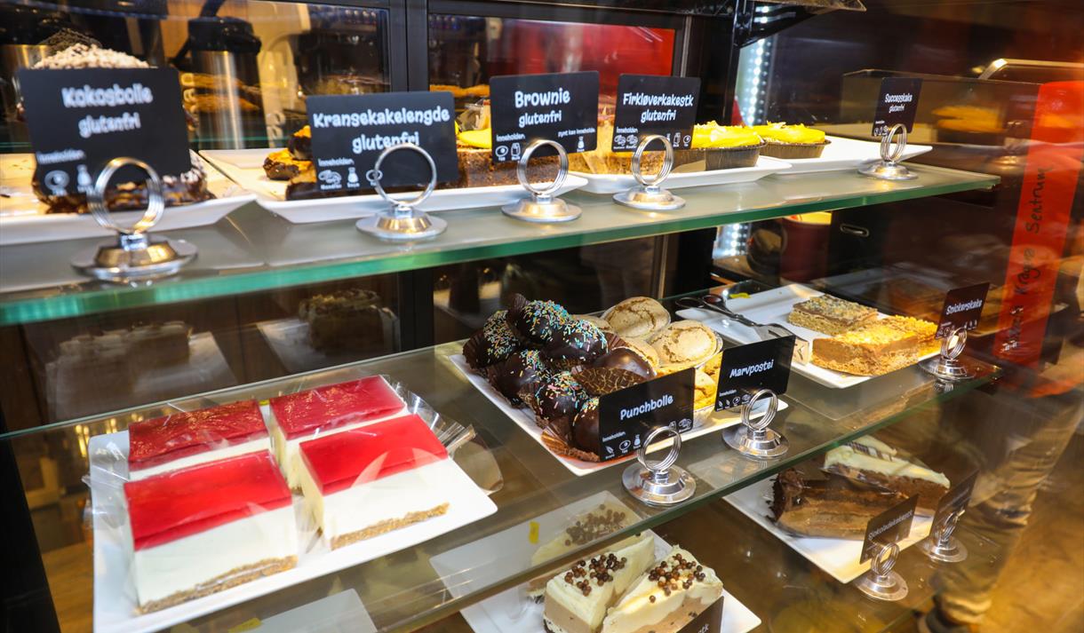 Here you can enjoy lovely pastry, cakes, a great selection of bread and various lunch options. There is also a selection of tea, coffee, hot chocolate and soft drinks.
