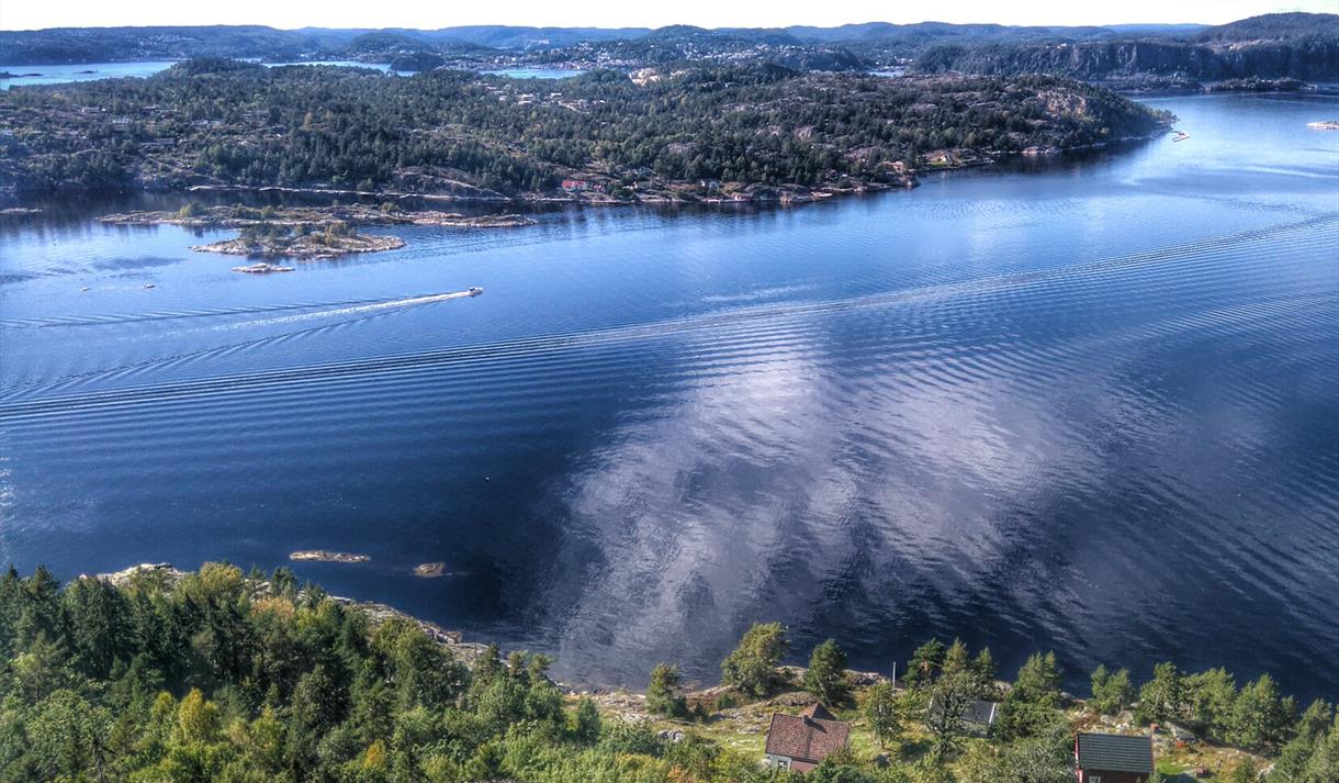 The second half of the two most beautiful viewpoints in the Kragerø-archipelago you will find at Østre Gumøyknute, towering 107 meters above sea level. Here you will find Kragerøs best kept burial mound, probably dating all the way back to the Bronze Age. From Østre Gumøyknute you can follow the path down to Skutevika, which is a well-known and popular marina for boat tourists. Or the other way around. The roads and trails on the island are also great for cycling. By foot the hike takes about half an hour from Skutevika to the top. Remember to bring your binoculars.
