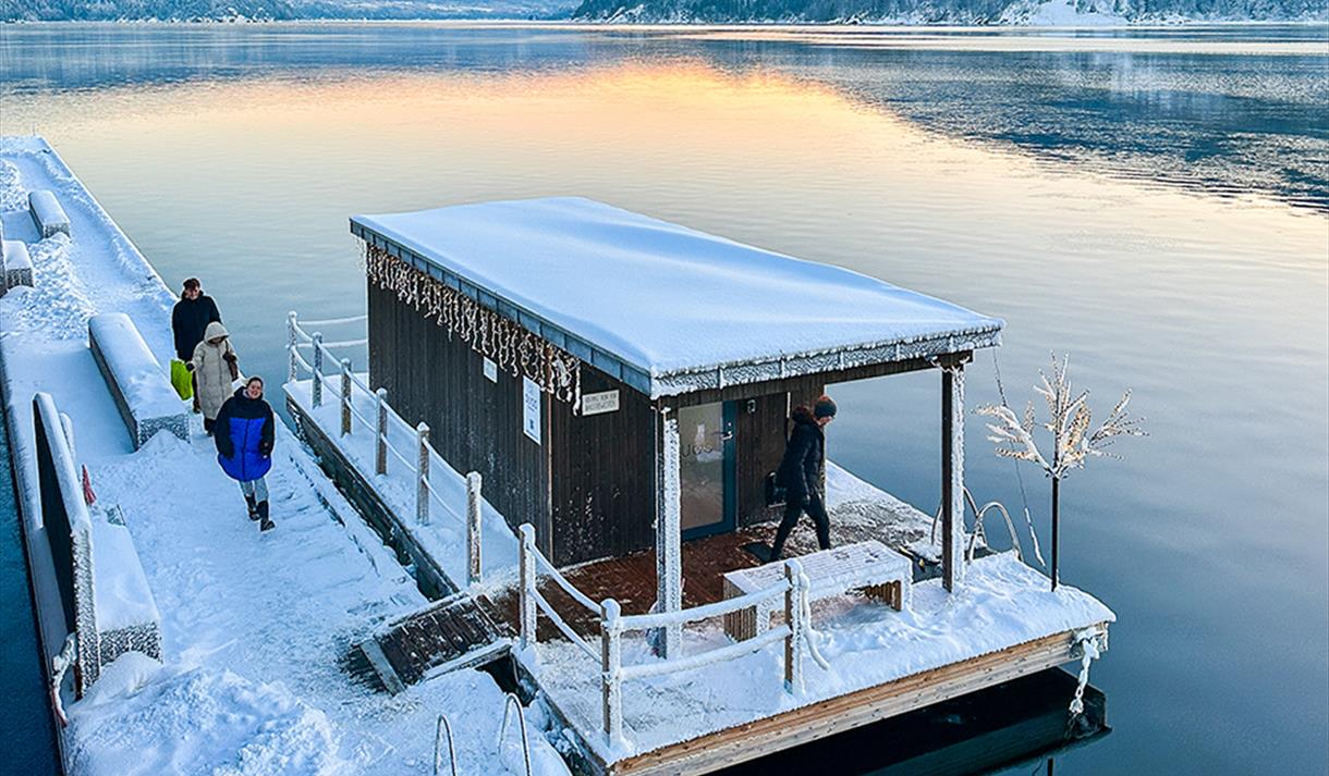 Dugg Sauna is a floating sauna located at the guest pier in Notodden, on the backside of the Book and Blues House. The sauna offers a fantastic view of Heddalsvatnet and the mountains to the south.