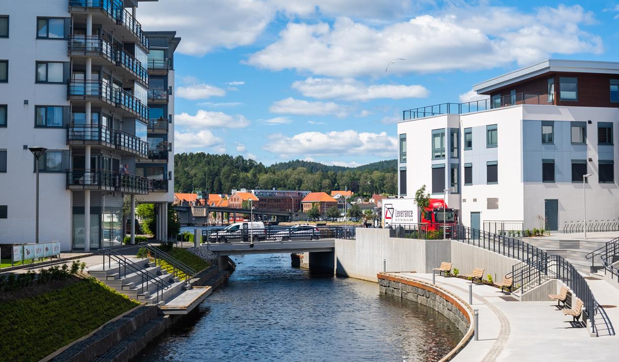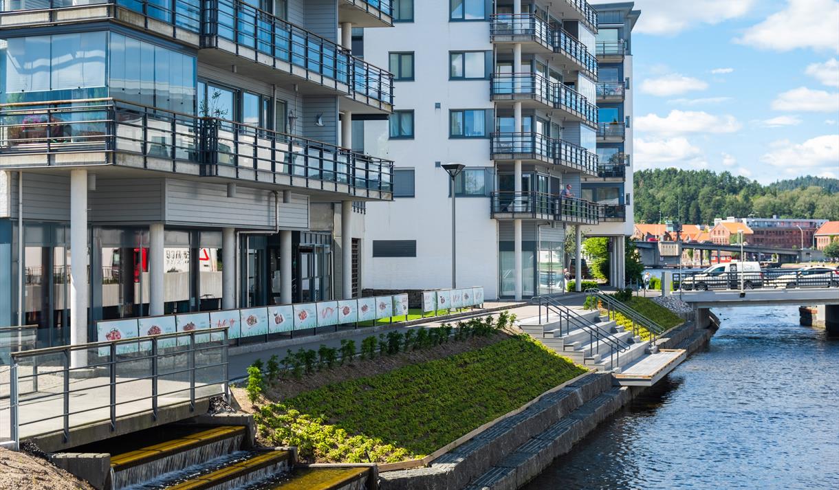 Park your the car at the mall Down Town Centre and stroll along the beautiful river promenade. The first one comes to the new district "Bratsberg Brygge", a new and exciting residential area.