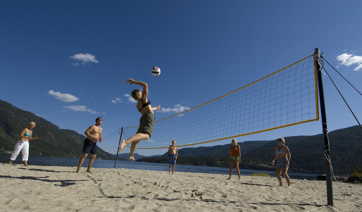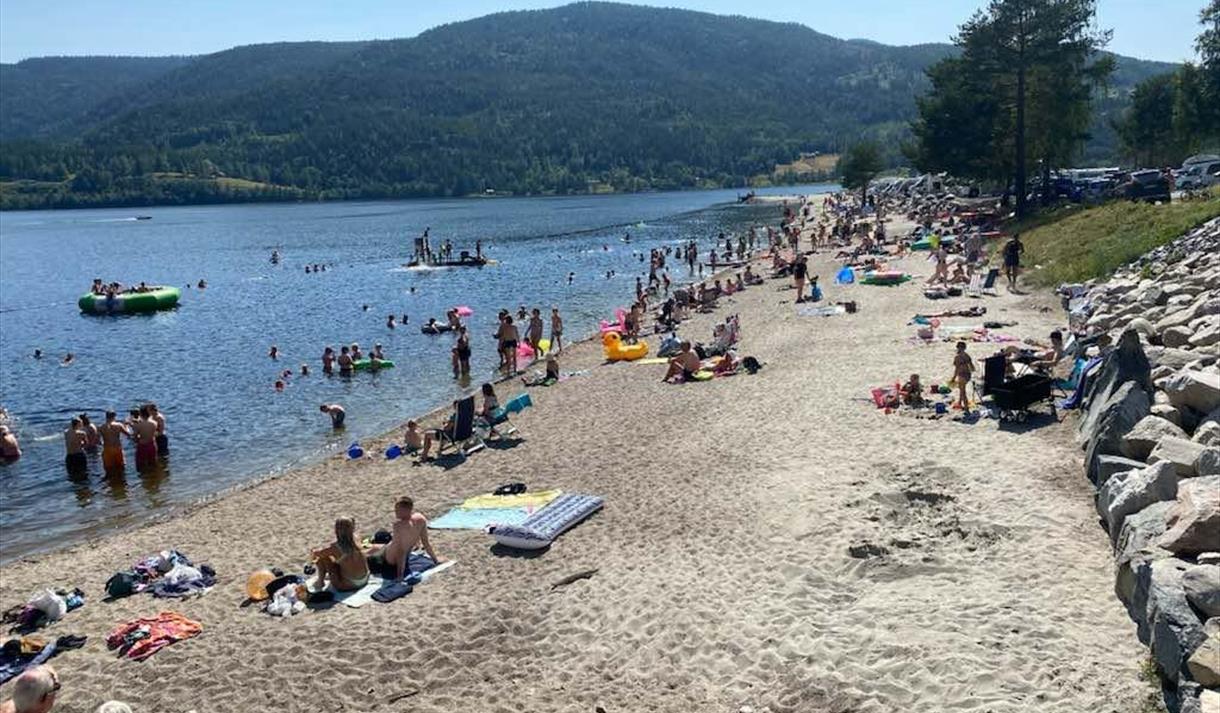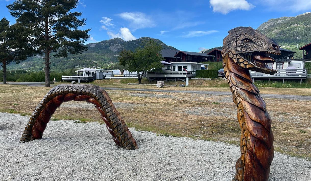 Seljord Camping is the perfect destination to start exploring Telemark! From Seljord Camping you are able to take short and long tours and experience beautiful nature and historical sites both accesible by foot and car. There is a pedestrian walkway to the downtown area, and a lovely beach with boat, canoe and paddleboat rental. There is a nice playground for children and cabins and camping trailers for rent. Excellent standards.