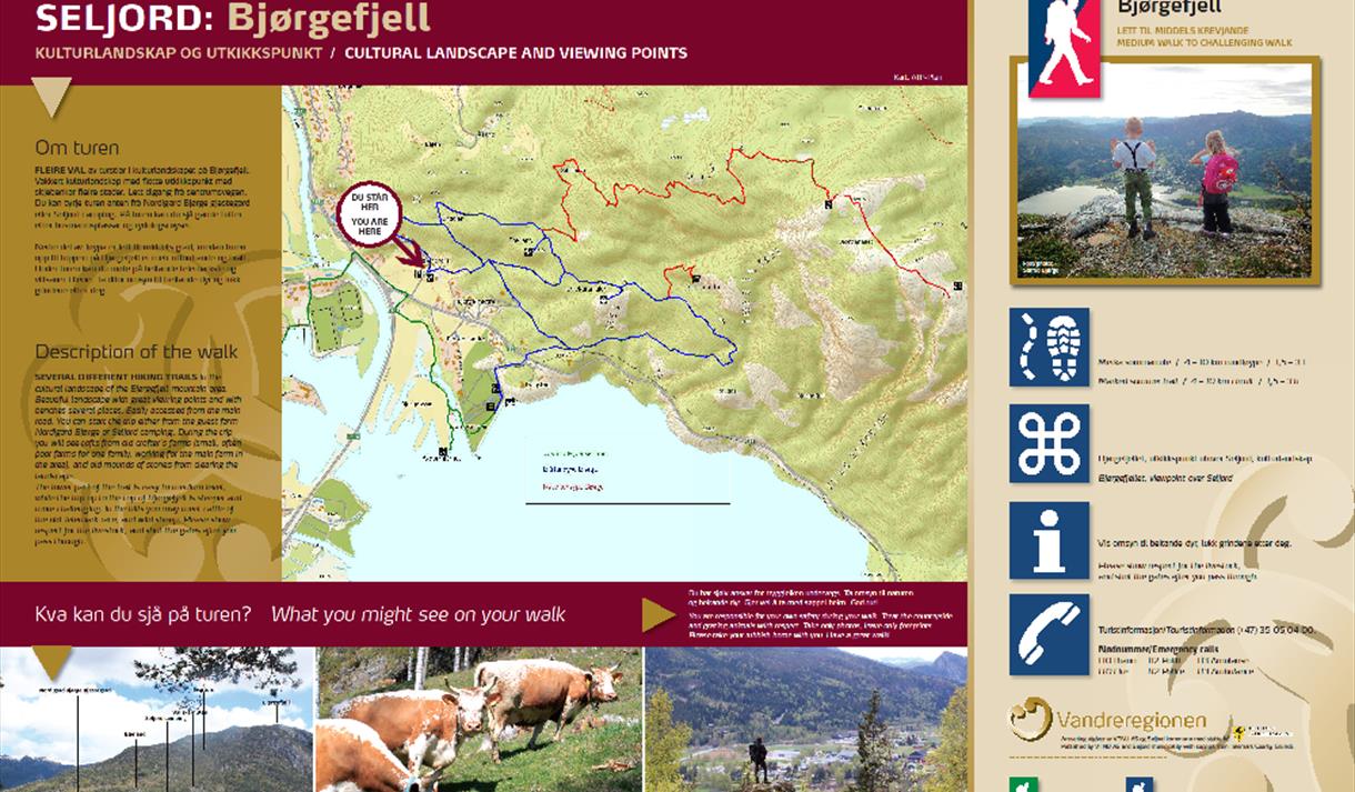 In Bjørgefjell you can choose different footpaths through the cultural landscape. The lower part of the route is graded medium, while the final ascent to the top of Mount Bjørgefjell is steep and challenging. Be aware that the waymarking is not optimal so pay attention to the signposting along the trail.