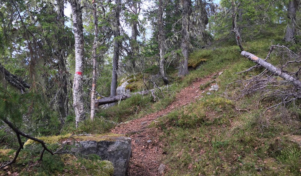 For an easier hike, you can choose to start in Grunningsdalen and follow the marked trail from here. Please note that this is a toll road and that parking is limited at the start of the trail.