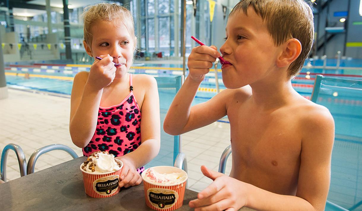 Cafe Aqua offers a delicious selection of tasty hot and cold food along with refreshing beverages. Enjoy a good meal in pleasant surroundings by the pool or in the cafe outside the water park!