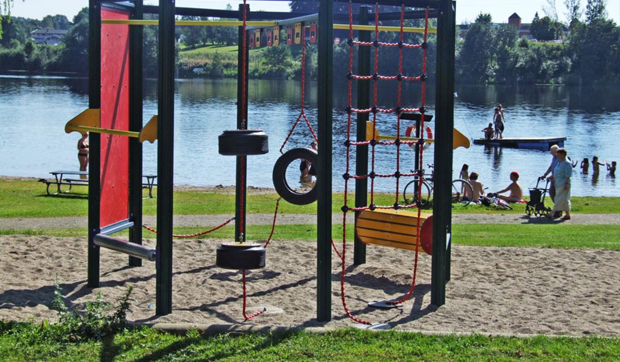The idyllic Bakkestranda swimming area is conveniently located on the north side of Hjellevannet, close to Skien town centre, about a 5-minute walk away. On warm summer days, this is a popular swimming spot for all ages. You can safely bring the family here, as there are plenty of activities for children to enjoy.