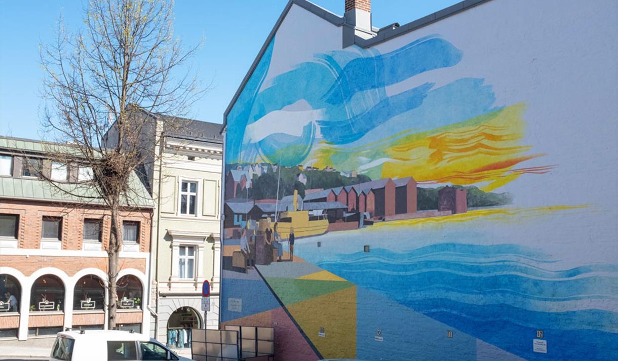 David's wall is based on an original photo from Fiskeslepet in 1910. The family sitting on the wharf are reportedly emigrants, waiting for the boat that will take them to Oslo, where they will continue their journy to America.
