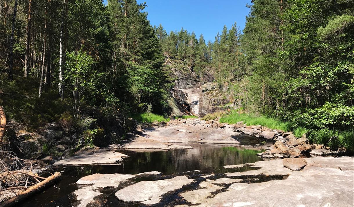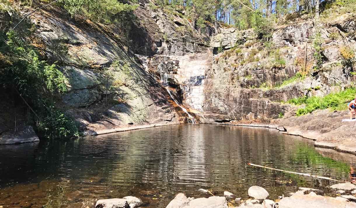 Garvannsfossen is ideal for those seeking wild swimming, a unique hike, or a beautiful cycling experience in the Skien area.