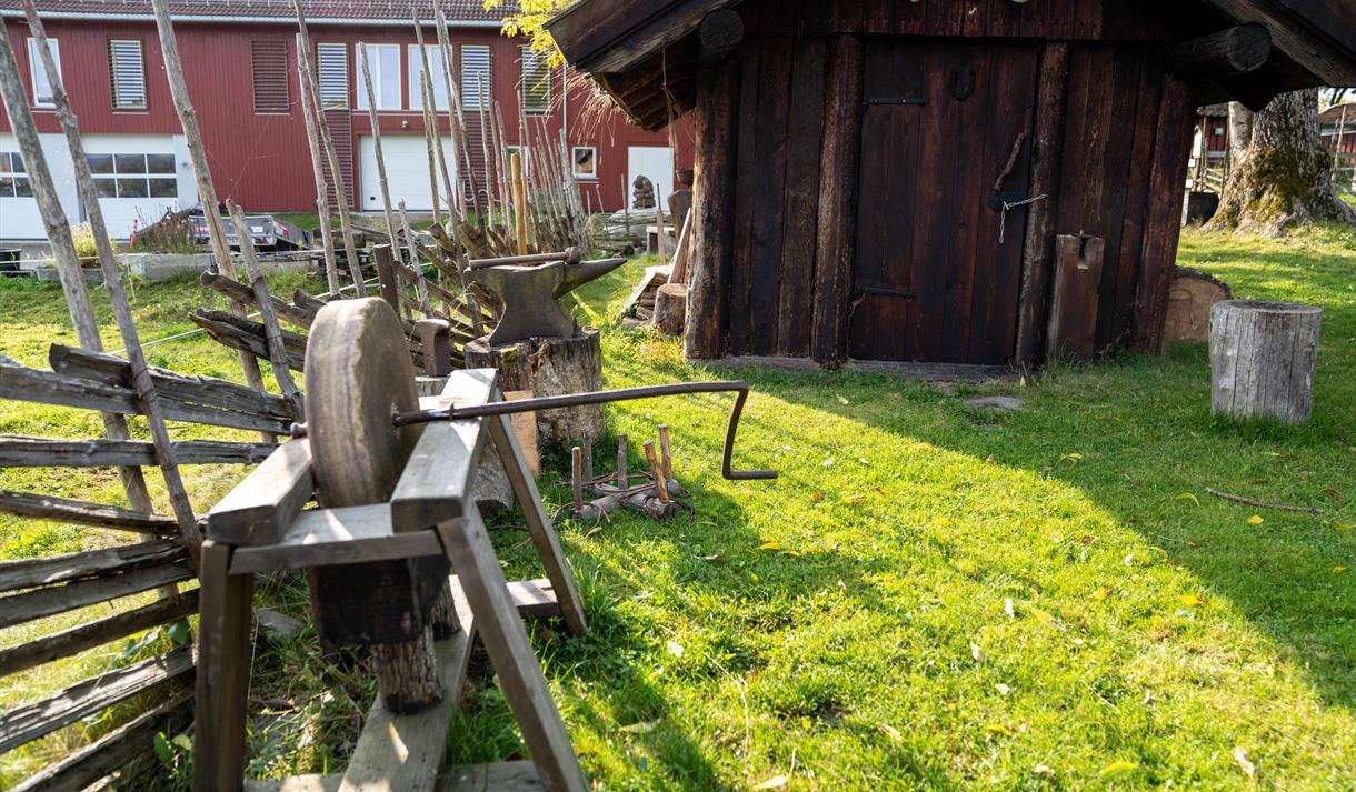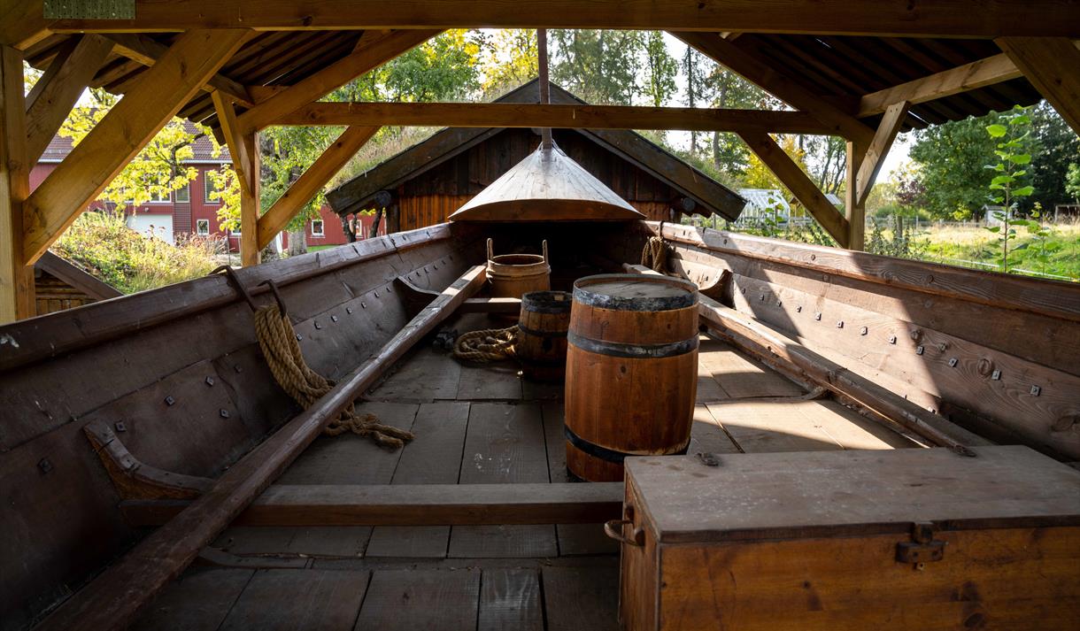 The builders even created a faithful replica of the iron cauldron found on the Oseberg Viking Ship. Next to the main house, a blacksmith's forge and a barn have been built. The barn now serves as an exhibition space featuring replicas of Iron Age artifacts.