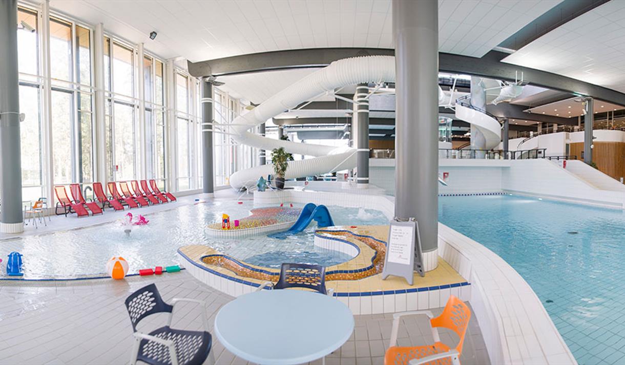 You can frolic in 6 different pools and dive from 7.5 meters if you dare! Experience a wave pool with a beach zone where the wave goes every hour. Adjacent to the wave pool there is also a power channel where you can be carried by the current - around and around.