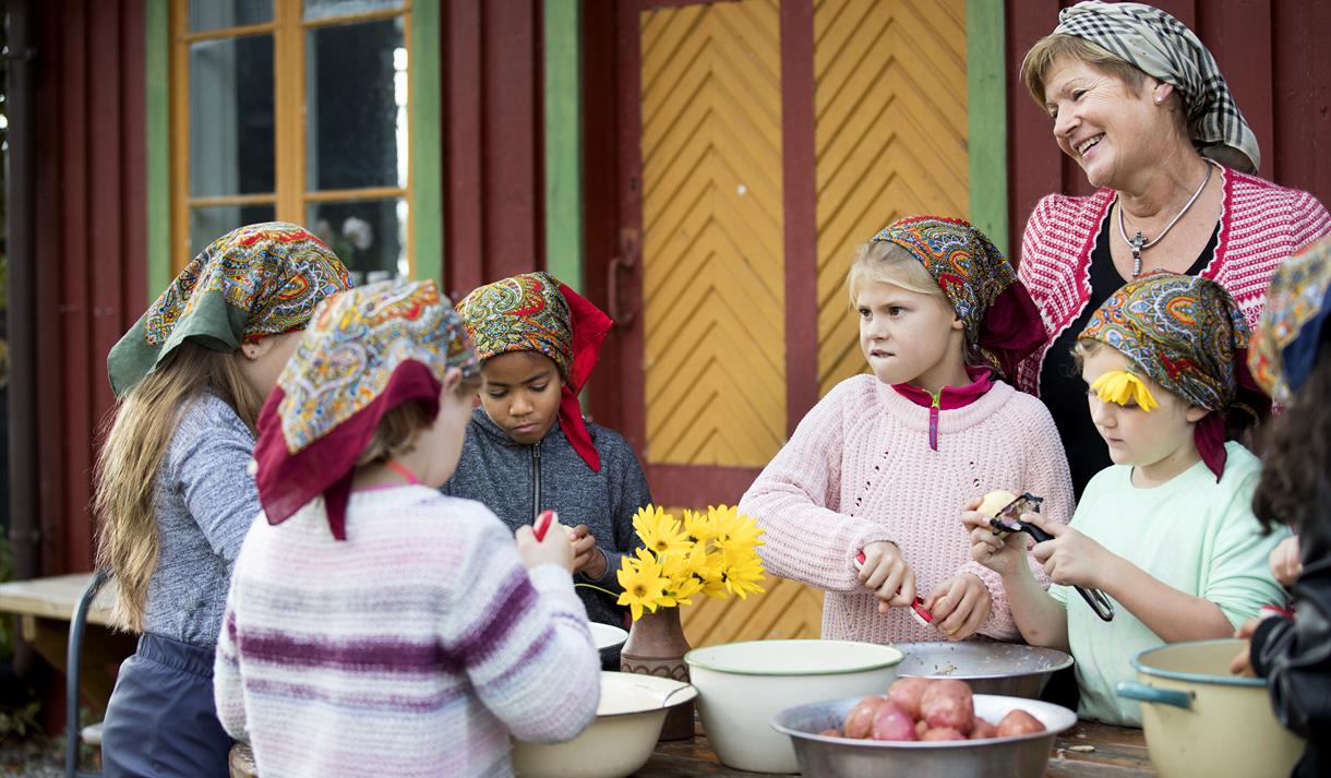 The old farm buildings date back to the 18th and 19th centuries. Their furniture and utilities, tools and the like bear witness to a farm whose owners have been keen to keep up local customs and traditions. Of special interest is perhaps the collection of handmade silver-mounted knives and the exquisite locally woven tapestries.