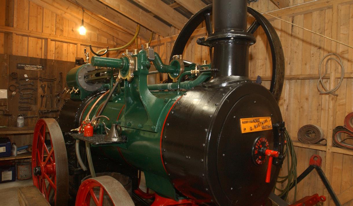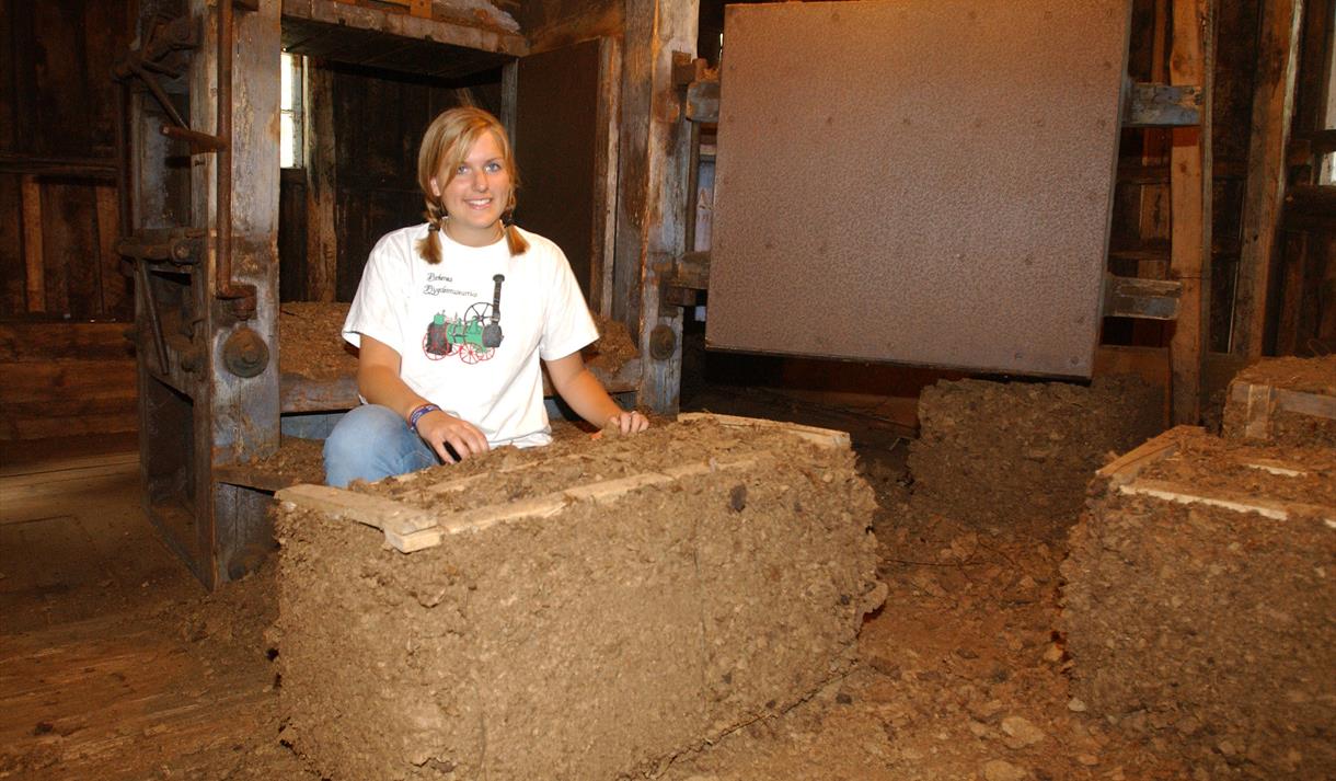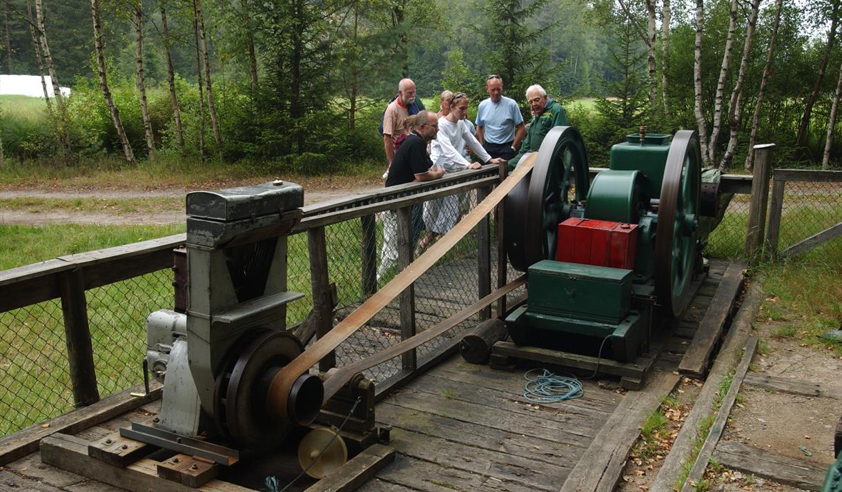 The "peat for bedding" factory was built in 1896 and was operational until 1967. It was reopened as a museum in 1989. The machinery is powered by an English mobile steam engine (Traction engine) from 1907. Power is transmitted via balatareimer to a main shaft which in turn drives authentic peat presses, peat river the like