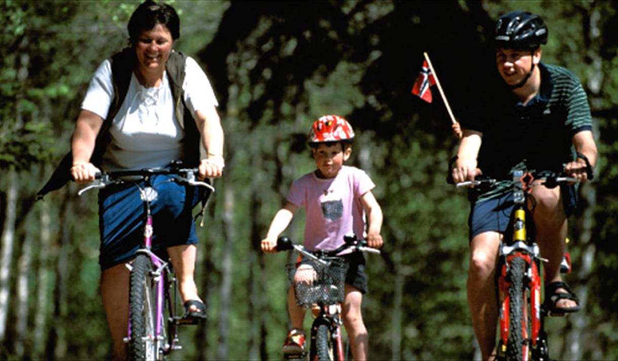 What follows is a slight climb to the Veum farms and easy descents southwards to Veum Church. Continue along main road 355 for another 2 km until you reach the road sign for Håsom Cross the bridge and bike along a gravel road for approx. 500 m. Turn into the forest at the first left and follow this path past Granheim and further on along the river to Haugfoss. From here, you bike over the bridge, turn to the right and follow the old transport route through the woods until you reach the Heggland Daglegvare grocery store. Once again you will find yourself biking on the main road for another 50 m until turning right, in the direction of Taraldli bridge. Cross the narrow bridge and bike for 1. Km or so. Once you have passed the small lake, turn to the left and bike south until you reach Snarteland. Pleasant afternoon bike ride in varied terrain. Length: Approx. 20 km. Time required: 2 to 3 hours. Terrain: Moderate physical-demanding