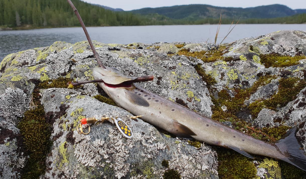 In Mosvatn there is whitefish and trout. The whitefish is difficult to catch with rod, and option is to try with worm. For the trout you can use both fly, swallow and spin. Here it is plenty of fish, but the fish is usually small (200-350 grams)