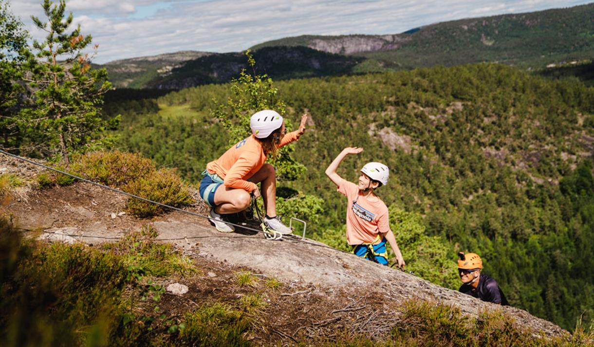 The trip is suitable from the age of 10 and up. It can still be an advantage to have normal physical shape. Use a climbing harness in the wall. This can be rented from Gautefall Event. If you are a group of several, you can book a guided tour.