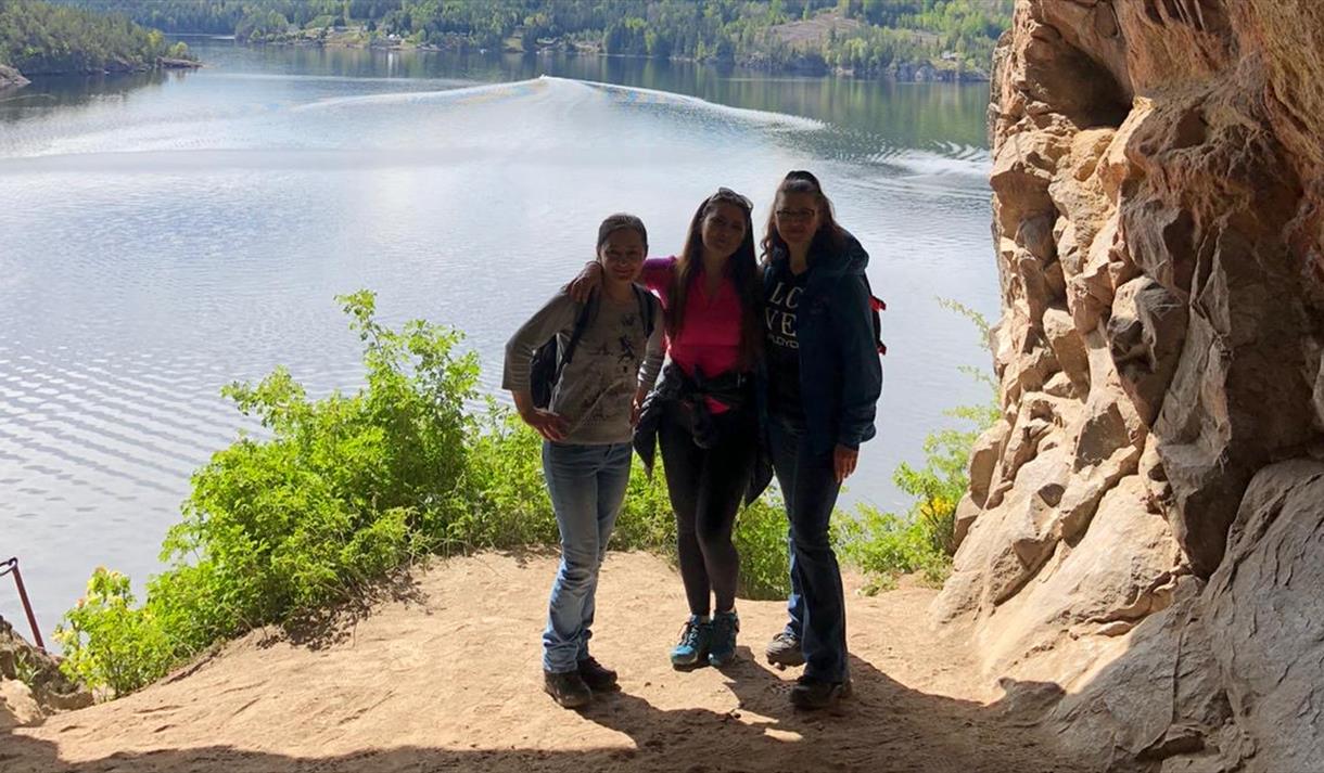 The Michael’s Cave is a unique and historic grotto located in a steep cliff face, approximately 30 meters above the lake Norsjø in Skien, Telemark, Norway. This impressive natural formation, which once served as a Catholic church and pilgrimage site, is a popular and exciting hiking destination offering fantastic views over Norsjø. The cave is clearly visible from the water and combines nature, history, and a challenging outdoor experience.
