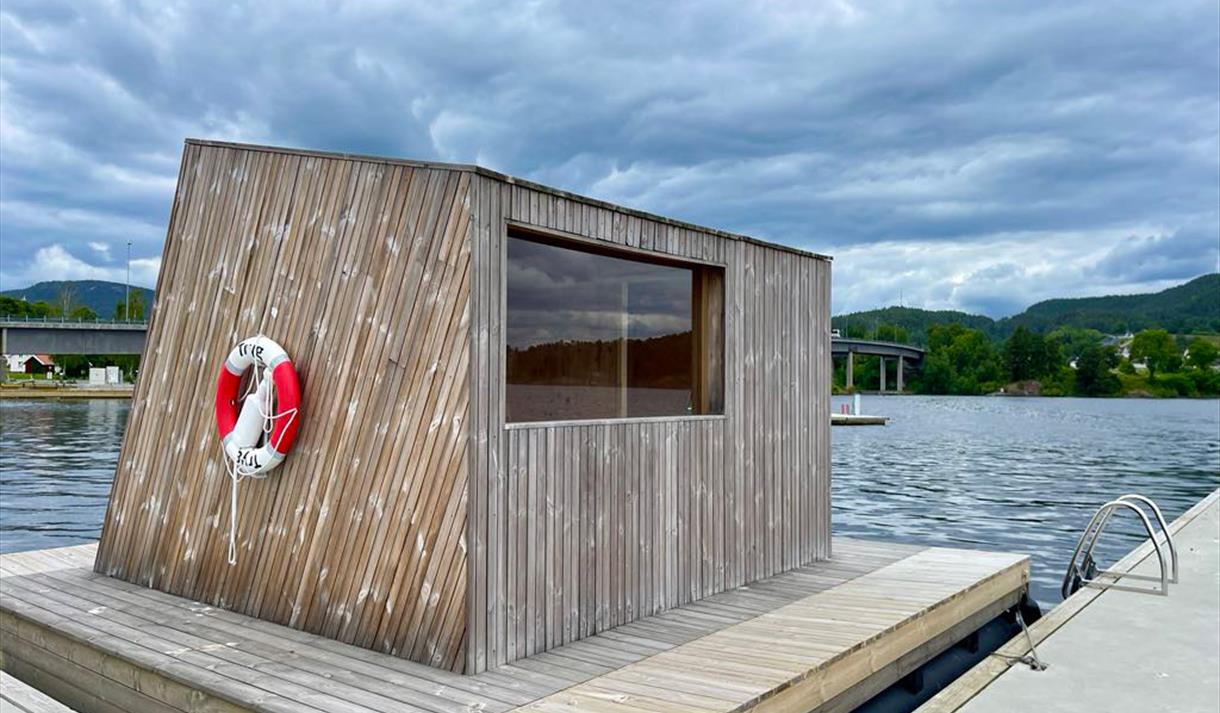 Indulge in a serene and warm experience in the beautiful surroundings of our floating sauna at Ulefoss.