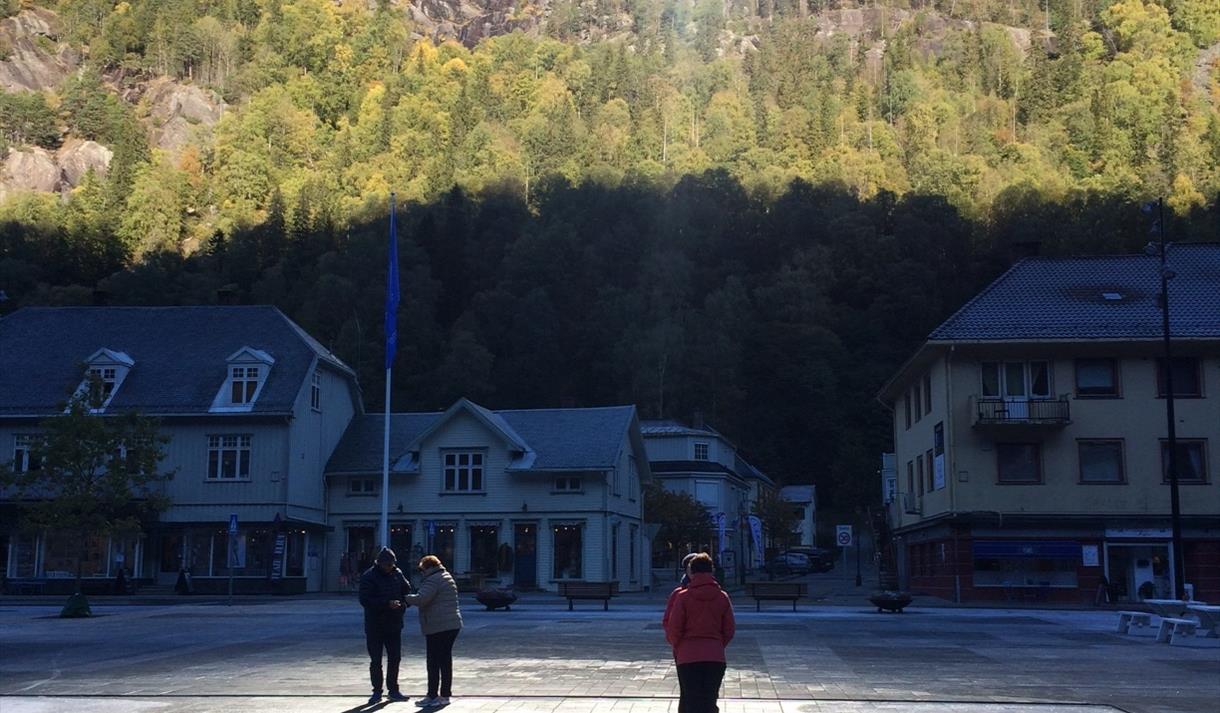 Rjukan is the home of a thriving small community which manages without the sun for almost six months of the year. The town lies at the bottom of a valley that is oriented east to west, with Gaustatoppen (at 1883 metres over sea level) and the other surrounding mountains immediately south of the town rendering the city sun free from September to March.