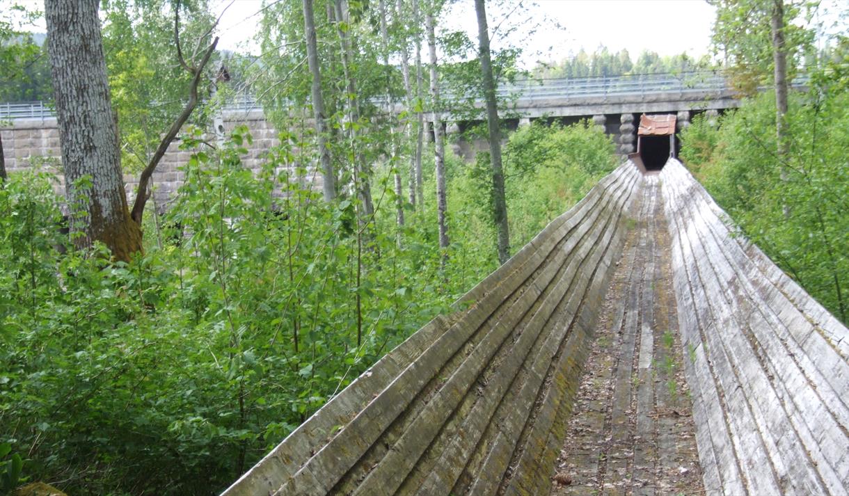 The Gorningen log chute in Siljan was used to transport large quantities of timber from the surrounding forests. The chute went all the way down to Lakssjø, making it possible to move the timber past several challenging rapids. This was a crucial solution that made the work of log driving in the area much easier.