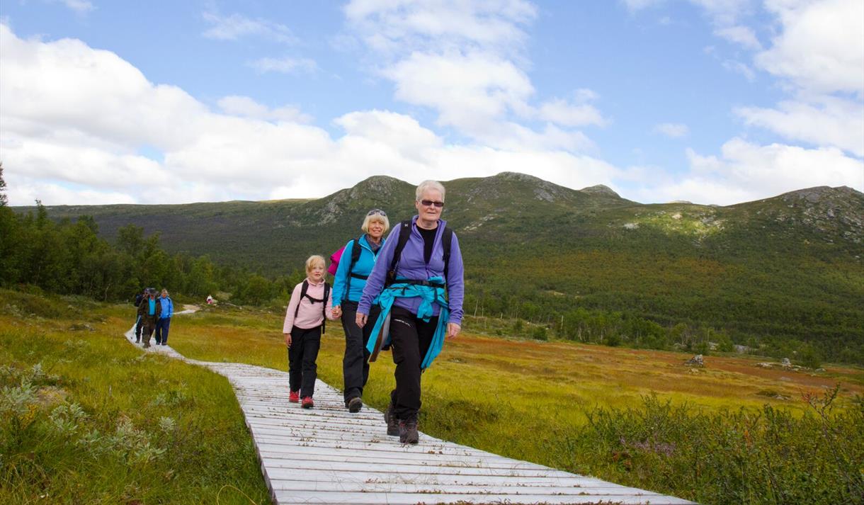 This is a light walk on pram-friendly gravel and plank roads to the eroded rocks and bathing place by River Kvenna. Great views over the mountain farm Argehovd in the foothills of the Hardangervidda plateau. Learn about life at Møsstrond through the years from the information boards along the way. Listen to the "talking post" to learn about life here today.