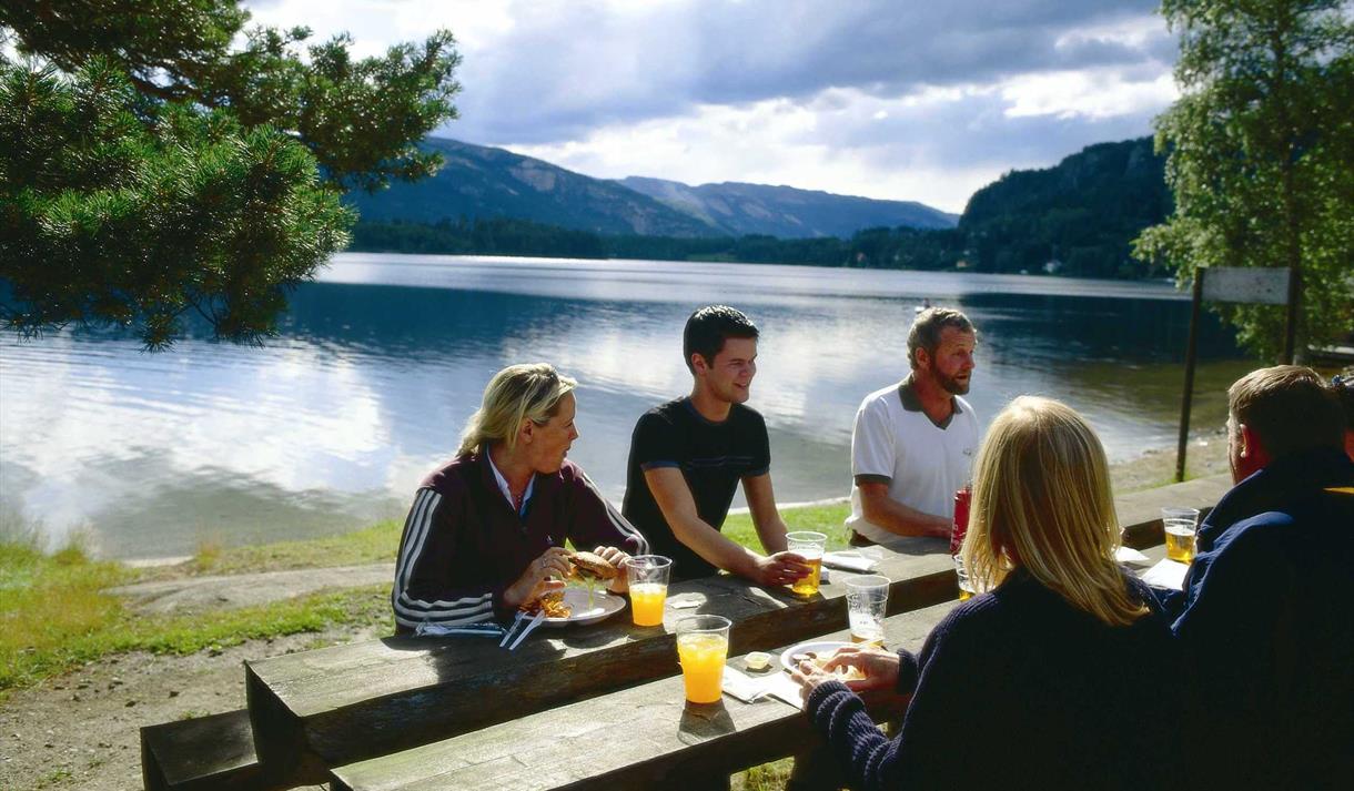 Straand Summerland Summe Cafè is a family friendly activity area, located near the waterfront of the Straand Hotel in Vrådal. From late June to beginning of August a summer café offers ice fastfood, pizza, light meals, ice cream and beverages.