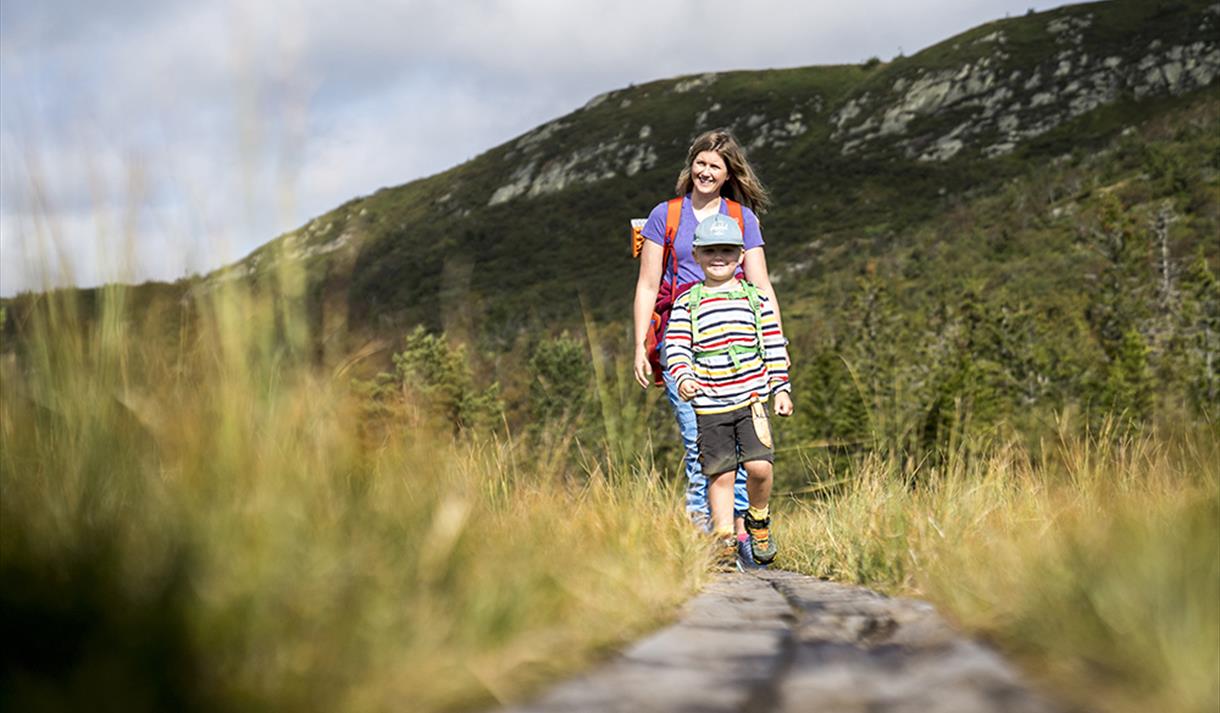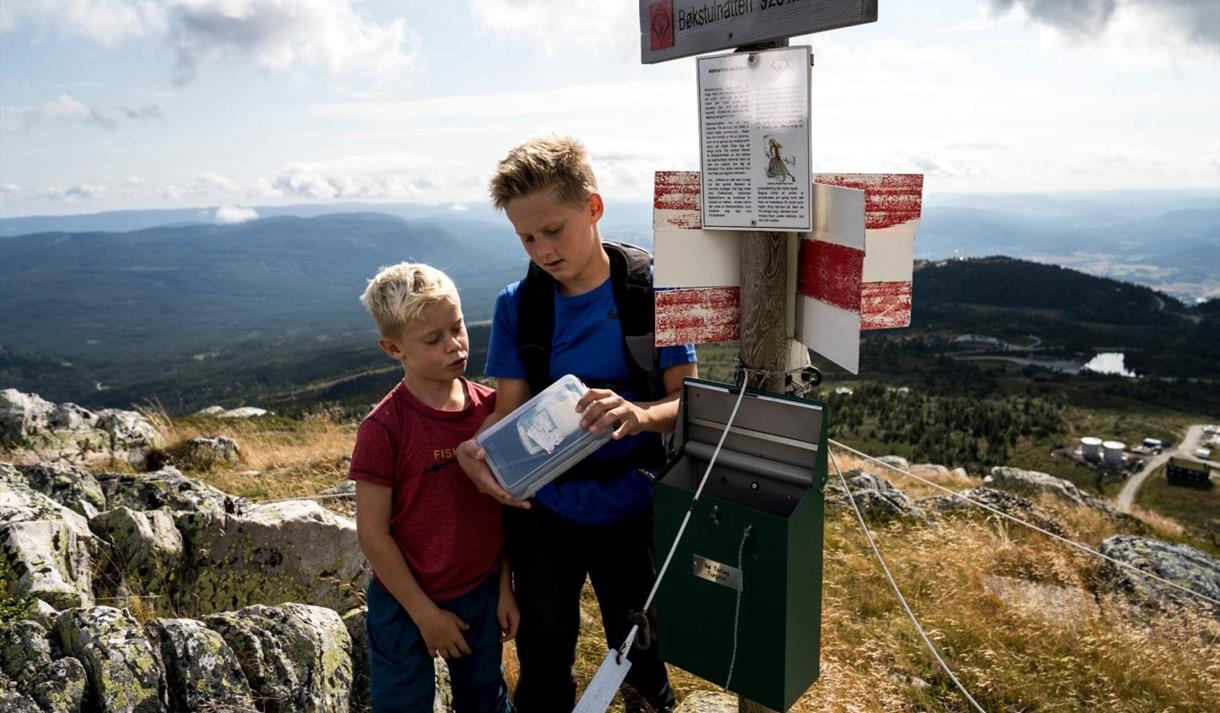 This tour is blue marked and signposted with Tretopper´n. In all intersections you will find an overview map that shows where you are on the map. Far west in the parking lot at Jønnbu, you take the main path up to Lifjell. At the first crossroads, turn west towards Anebunatten. At Grostulbekken, you can either choose to follow the path further towards Anebunatten or take a shortcut up to Krintofjellet through the narrow river course. This is an option for those who want an exciting brook gorge hike and a slightly more challenging ride. At the very top of Anebudalen, turn left and follow the path out on Anebunatten 878 masl. From here, follow the path back to the crossroads and further up Krintofjellet 923 masl and to the viewpoint. From Krintofjellet, the trail leads you down to the top of the steep Krintokleiva. From here you follow the path straight ahead and steeply up to the highest of the peaks: Bøkstulnatten 928 masl. Steep slope from the top down to the picnic area in «Grandma's loop». Then you go down Grandma's Trail and the path back to the parking lot at Jønnbu. You can of course choose to go on the round trip Tretopper´n in both directions. We recommend families with small children to go straight ahead in the first kiss and turn into the "Grandmother's loop" with a picnic area. Follow the "Grandmother's Loop" and the path further up to Krintofjellet. You can also choose to go only to one or two peaks and thus shorten the round trip. The mountain experience is great regardless of the number of peaks you visit.
