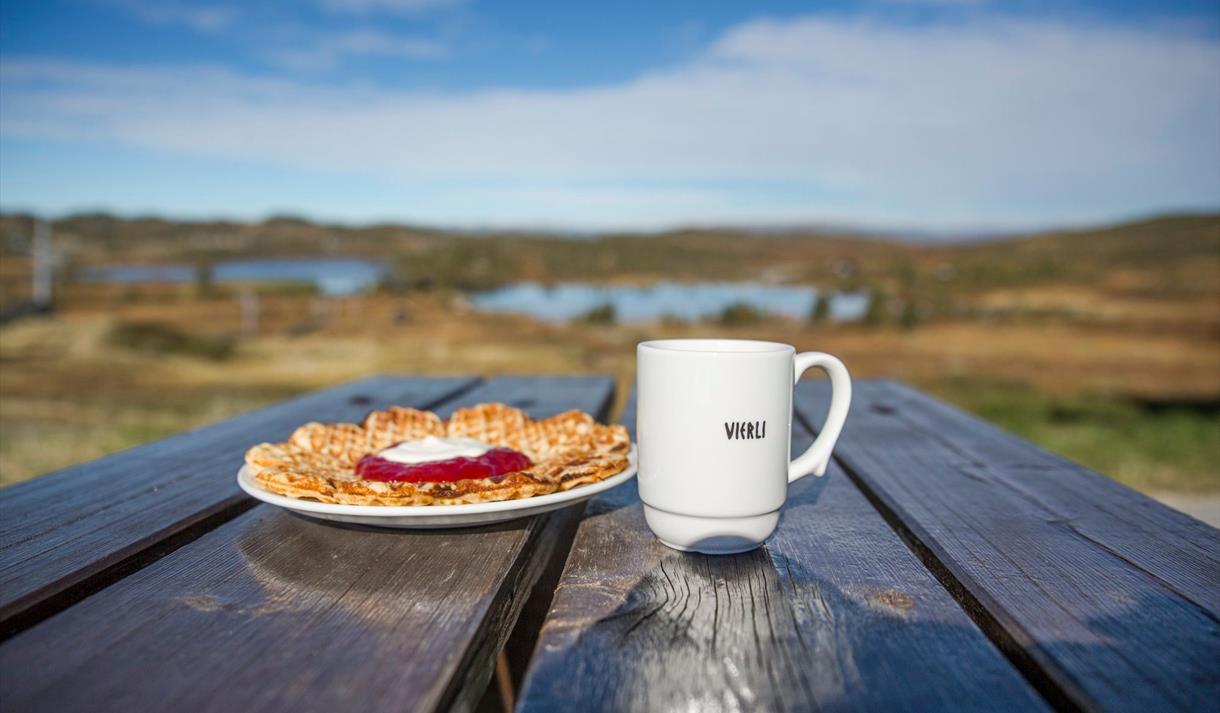 Vierli cafeteria is located right next to Rauland ski center - location Vierli. Vierli is located at 1010 meters above sea level and has a magnificent panoramic view of Raulandsfjell and Hardangervidda. Here you are welcomed to great hiking experiences, fishing, boat / canoe trips and other things that belong to the mountains.