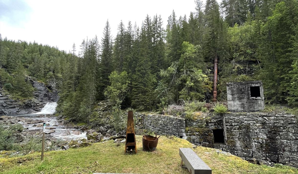 The trail follows an old mining road and is approximately 1 km each way. The route is out-and-back along the same path. Along the way, you’ll pass traces of old settlements and mining activity from the time when Åmdals Verk was a busy mining site. Several information signs are placed along the route, providing insights into the various historical locations, making this a fascinating and educational walk for all ages.