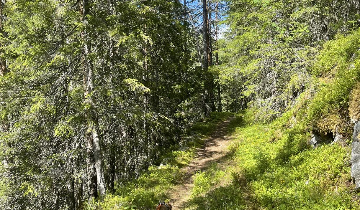 This short but rich hike begins at the junction where you turn off the road down to Åmdals Verk Mines. You can park your car here and follow the clearly marked trail that leads you into a landscape shaped by both nature and cultural history.