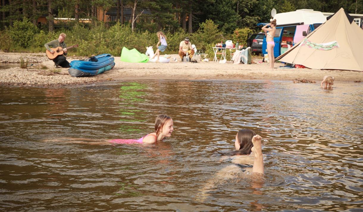 Kilen Camping is situated idyllically by Flåvann with a sandy beach reminiscent of the Mediterranean and water temperatures typically between 20 and 25 degrees Celsius, making it perfect for a beach holiday. In addition to great bathing temperatures, you'll find water trampolines, water slides, and a bathing platform. You can also try the sauna or take a boat trip.